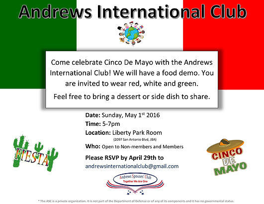 This website is the official site of the Andrews Spouses' Club. Views expressed within are not to be considered as those of the United States Air Force, the Department of Defense or the United States Government. Products, services and/or external links mentioned herein do not constitute endorsement by the same.